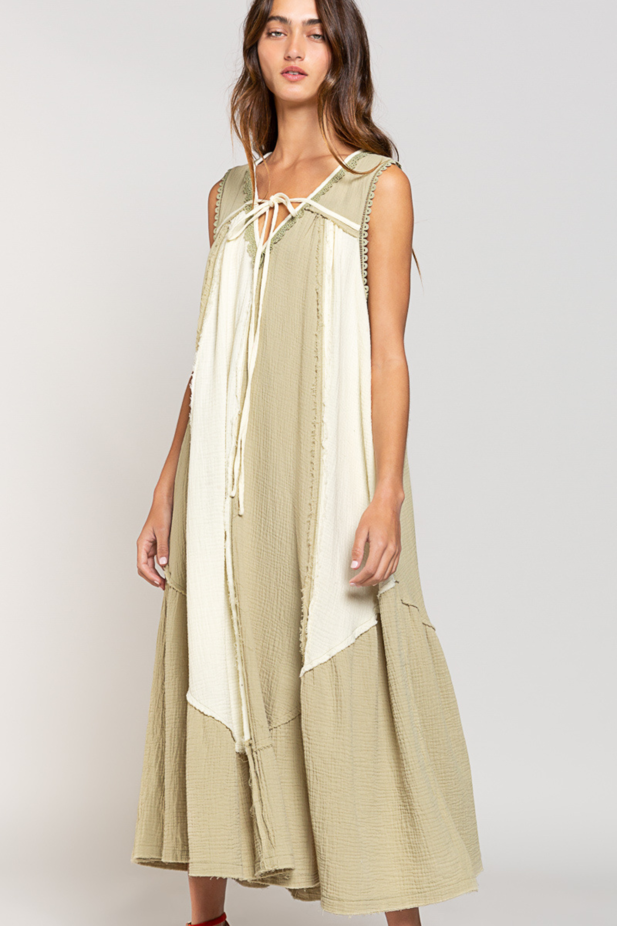 Sleeveless Midi Dress with Contrast Color