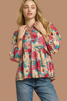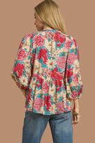 This Floral Peplum Blouse with Tie Neck is a feminine addition to your wardrobe. The mix floral pattern adds a colorful touch to the blouse. Featuring a flattering peplum silhouette, it accentuates the waist for a flattering fit. The tie neck detail adds a sophisticated and elegant touch to the top. Elevate your ensemble with this stylish and versatile Peplum Blouse today!