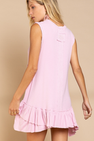 Upgrade your wardrobe with this Sleeveless Baby Doll Dress from POL. Designed with a round neckline and a ruffle hemmed thermal contrast band, it also includes a panel with raw edge for added style and comfort. Perfect for any occasion, elevate your look with ease.