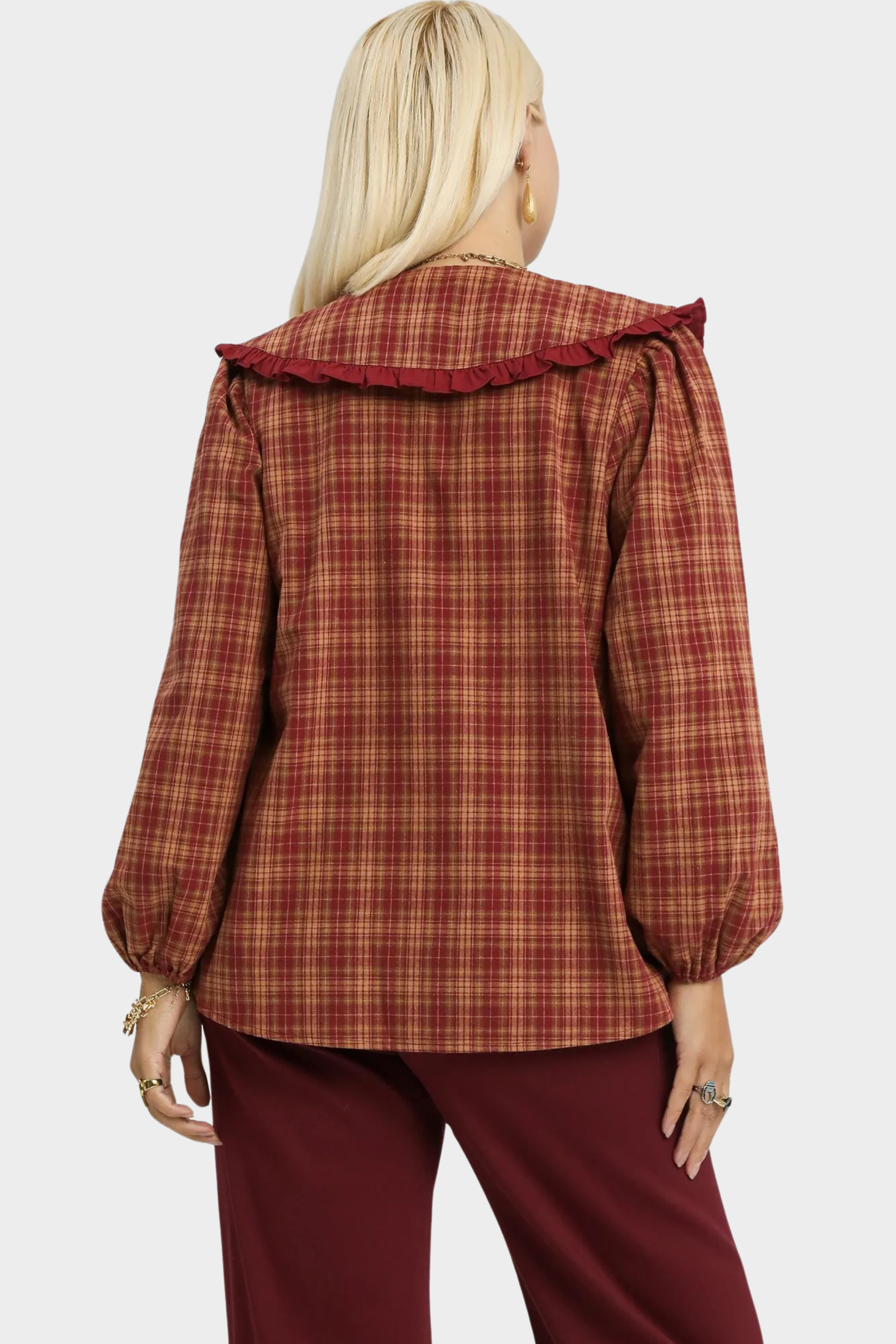 Plaid Ruffle Collar Blouse