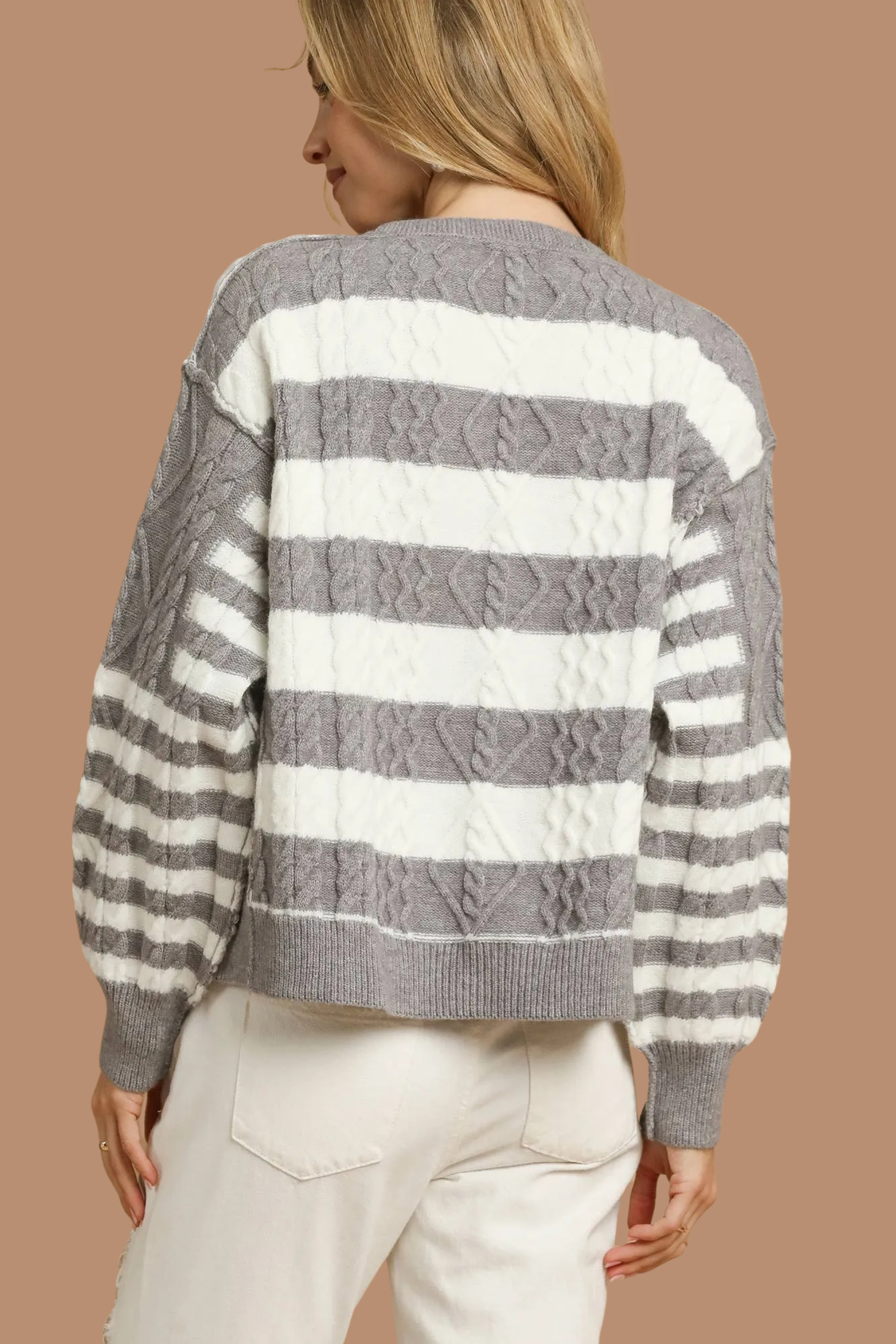 Multi Stripe Jersey Blouse with Tied Sleeves