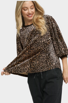 This stylish leopard print blouse features a fashion animal print pattern in rich brown and black tones. Made with comfortable fabric blend for all-day wear. The distinctive puff sleeves add a fashionable touch while the relaxed fit ensures comfort and versatility. Perfect for casual outings or dressed up occasions. The round neckline and 3/4 sleeve length make it suitable for various seasons. Easy care fabric with fade-resistant print maintains its vibrant appearance wash after wash.