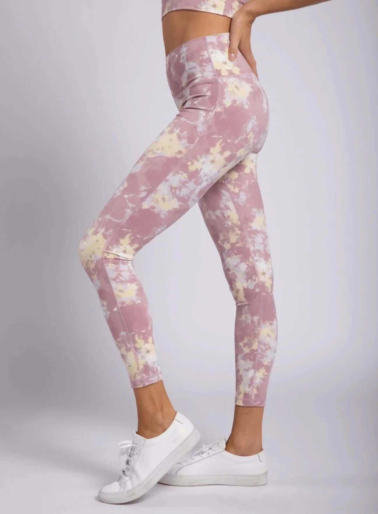 Featuring a faded tie-dye print. These high waist full length leggings lifts the booty and fits nicely above the hips. Designed to stay up and will not slide down during activities.