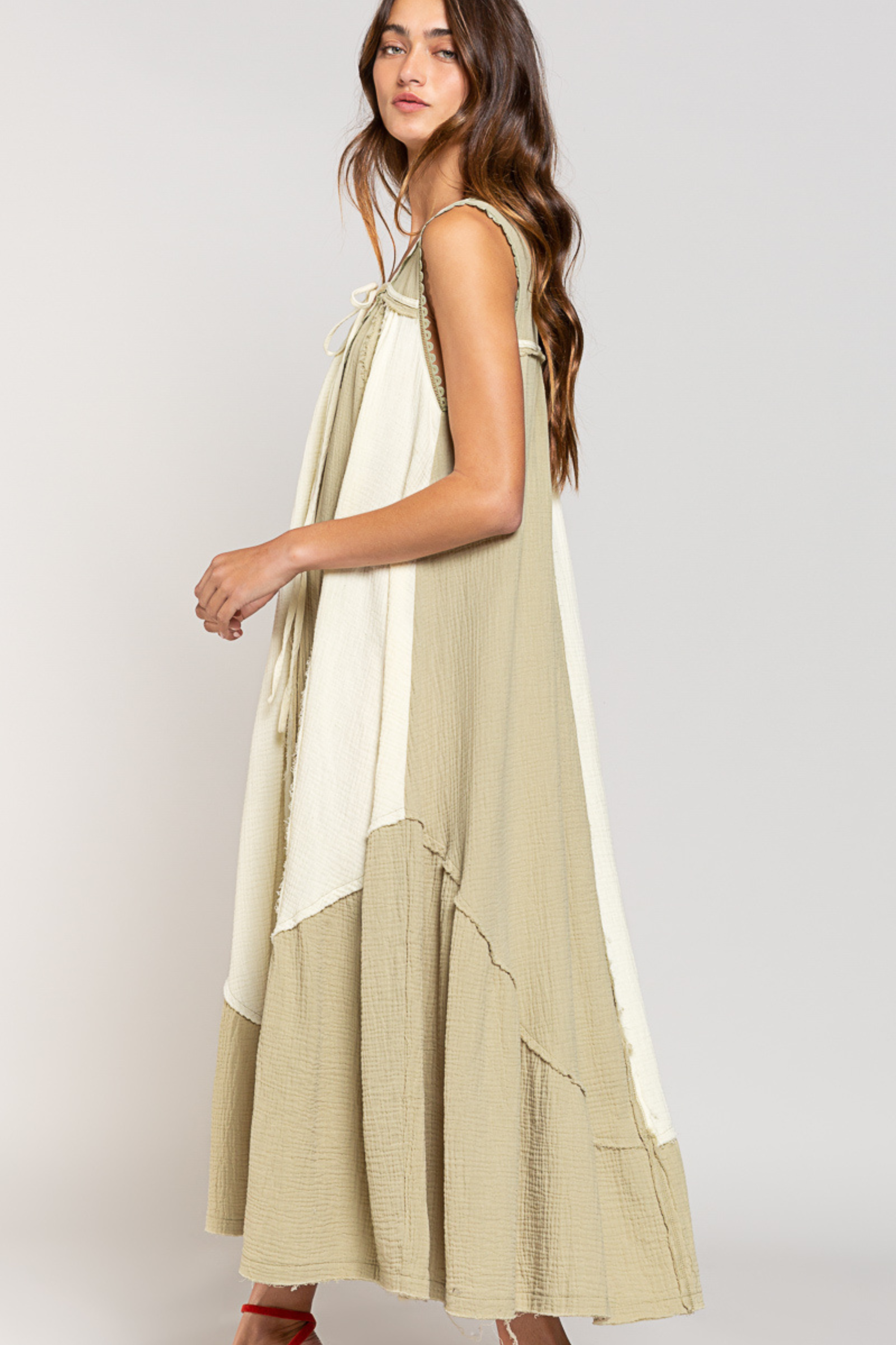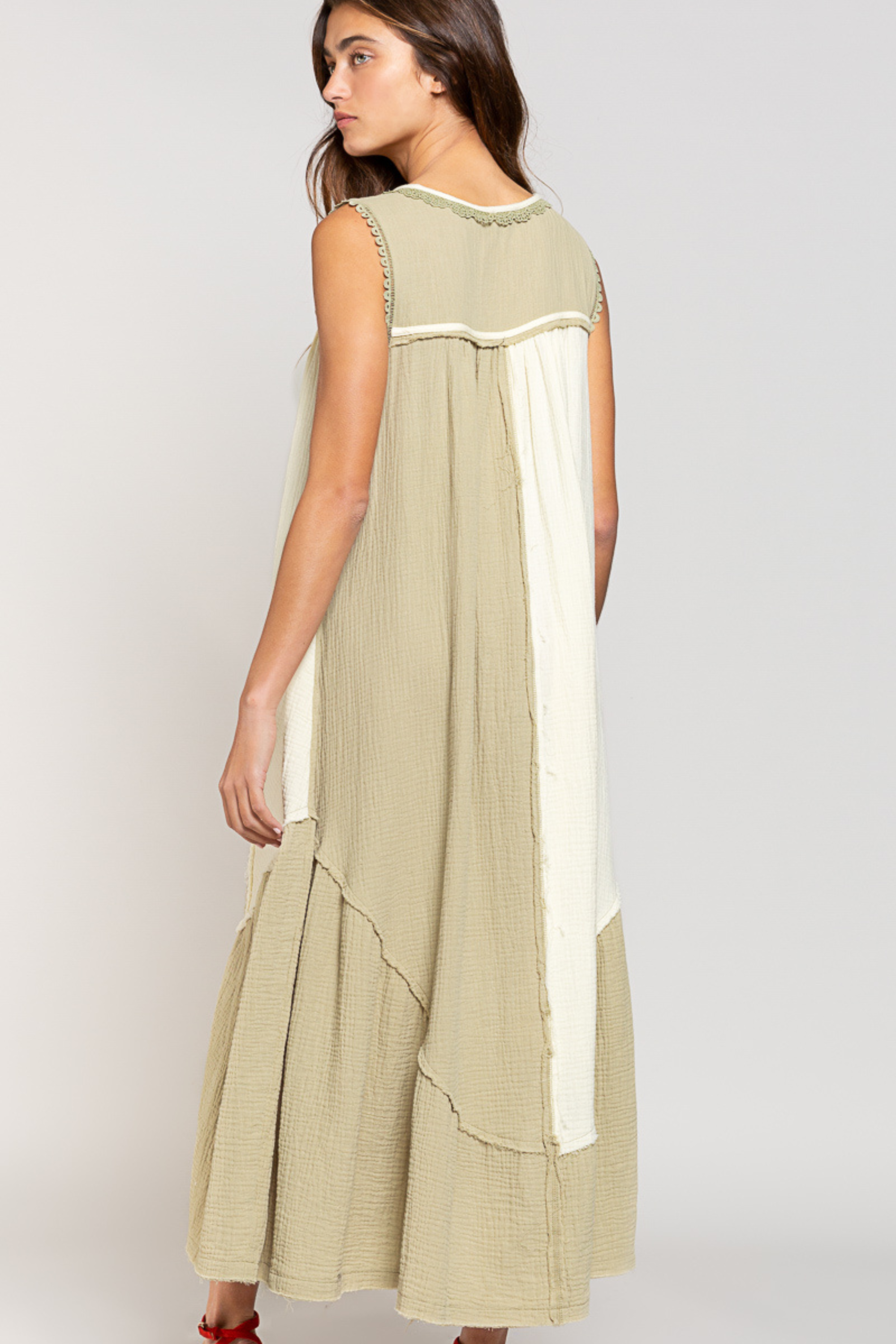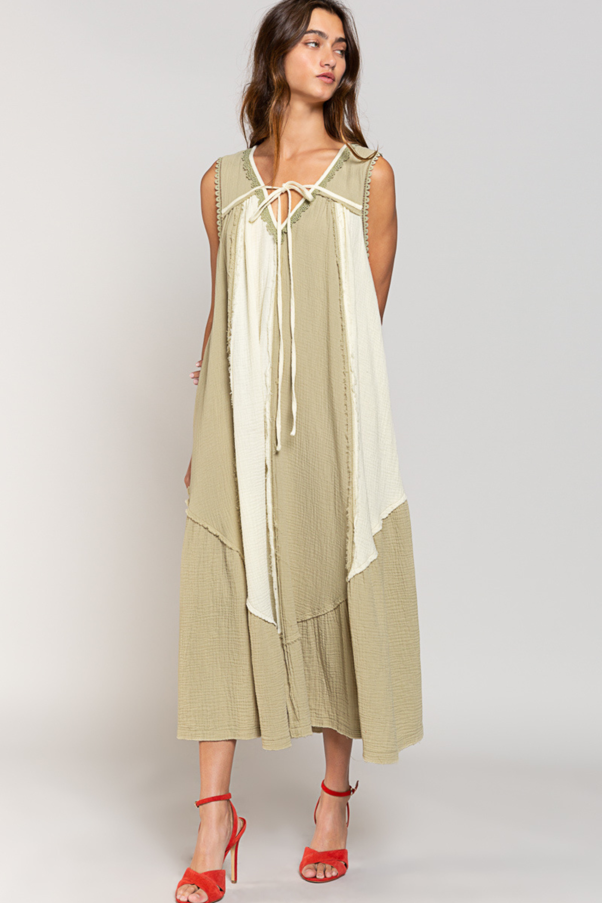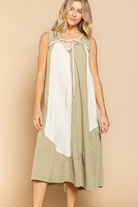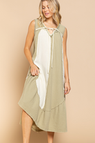 This Sleeveless Midi Dress with Contrast Color is stylish yet casual. It features a sleeveless midi silhouette with contrast color and a gorgeous V-neck. Perfect for any occasion, this dress is unlined for breathability and comfort.