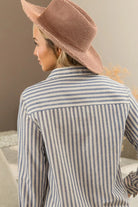 This stylish striped button-down shirt features a timeless vertical stripe pattern in soft neutral tones, crafted from lightweight cotton blend fabric for ultimate comfort and breathability. The relaxed fit design with long sleeves and classic collar creates a versatile piece perfect for casual everyday wear or office settings. The quality construction includes durable button closures and well-finished seams, while the effortless styling makes it easy to pair with jeans, shorts, or trousers for a polished yet comfortable look.