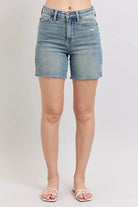 These Side Slit Denim Shorts combine a high-waisted design with a vintage wash for a trendy and stylish look. The side slits add a modern touch to these classic denim shorts, making them a versatile option for various outfits. Perfect for both casual and semi-dressed-up occasions, these shorts offer both comfort and fashion-forward style.
