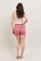These stylish high-waisted pink denim shorts feature a classic 5-pocket design with a modern twist. Crafted from premium stretch denim blend, they offer both comfort and durability. The pink hue adds a playful pop of color to any outfit, while the high-rise waistband provides a flattering, on-trend silhouette. These shorts feature traditional button and zip closure, reinforced stitching for longevity, and a slim fit that hugs curves beautifully. Perfect for summer days, music festivals, casual outings, or dressed up with heels for evening wear.