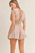 This trendy romper features a stylish design with pleated shoulder pad details for a structured look. The draped elements add an elegant touch to the romper, creating a chic and flattering silhouette. Perfect for a night out or a special event, this romper will make a fashion statement with its unique shoulder detailing.