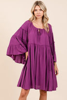 The Frill Bell Sleeve Dress is a chic and trendy choice featuring a stylish tie neck, elegant bell sleeves, and playful frill accents. Perfect for any occasion, this dress exudes sophistication and femininity. Pair with heels for a polished look or flats for a relaxed vibe.