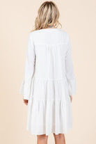 The Tiered Notched Flare Sleeve Dress features tiered layers and a notched design at the neck, adding a stylish touch to the dress. The flare sleeves offer a trendy element to the overall silhouette. This dress is perfect for a variety of occasions and can be dressed up with heels for a more formal look or dressed down with flats for a casual vibe.
