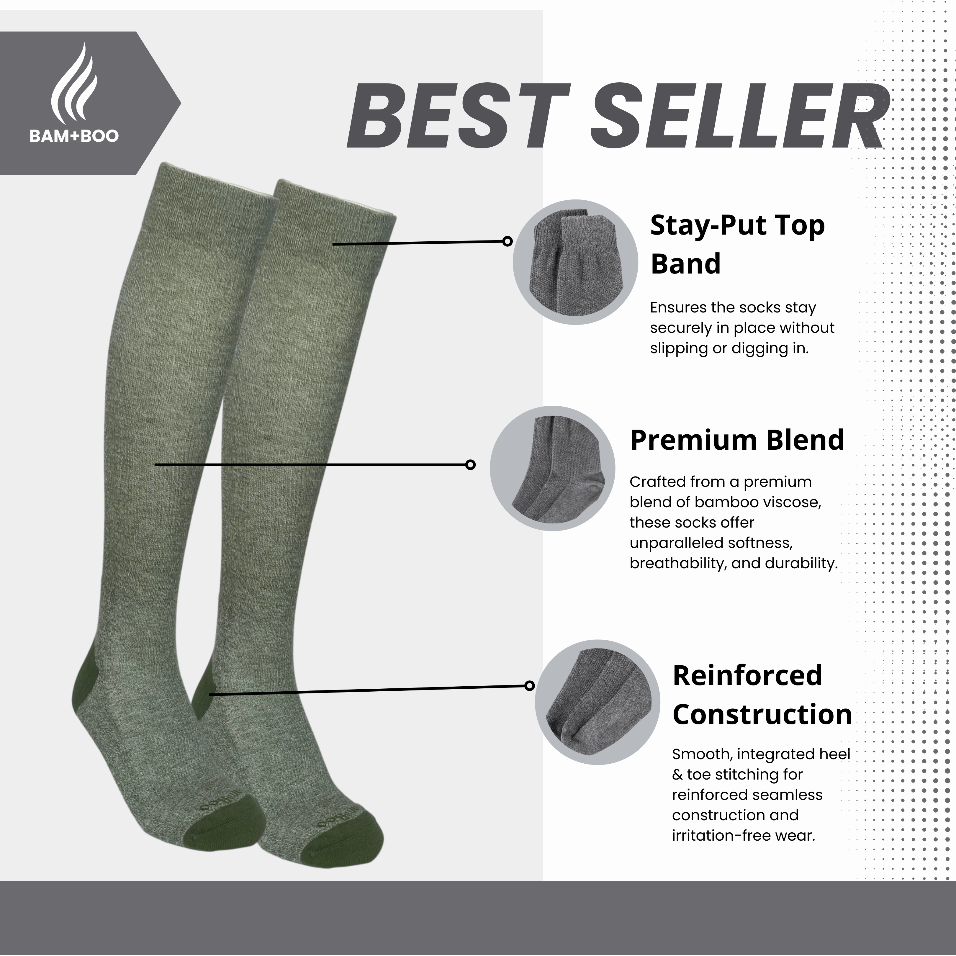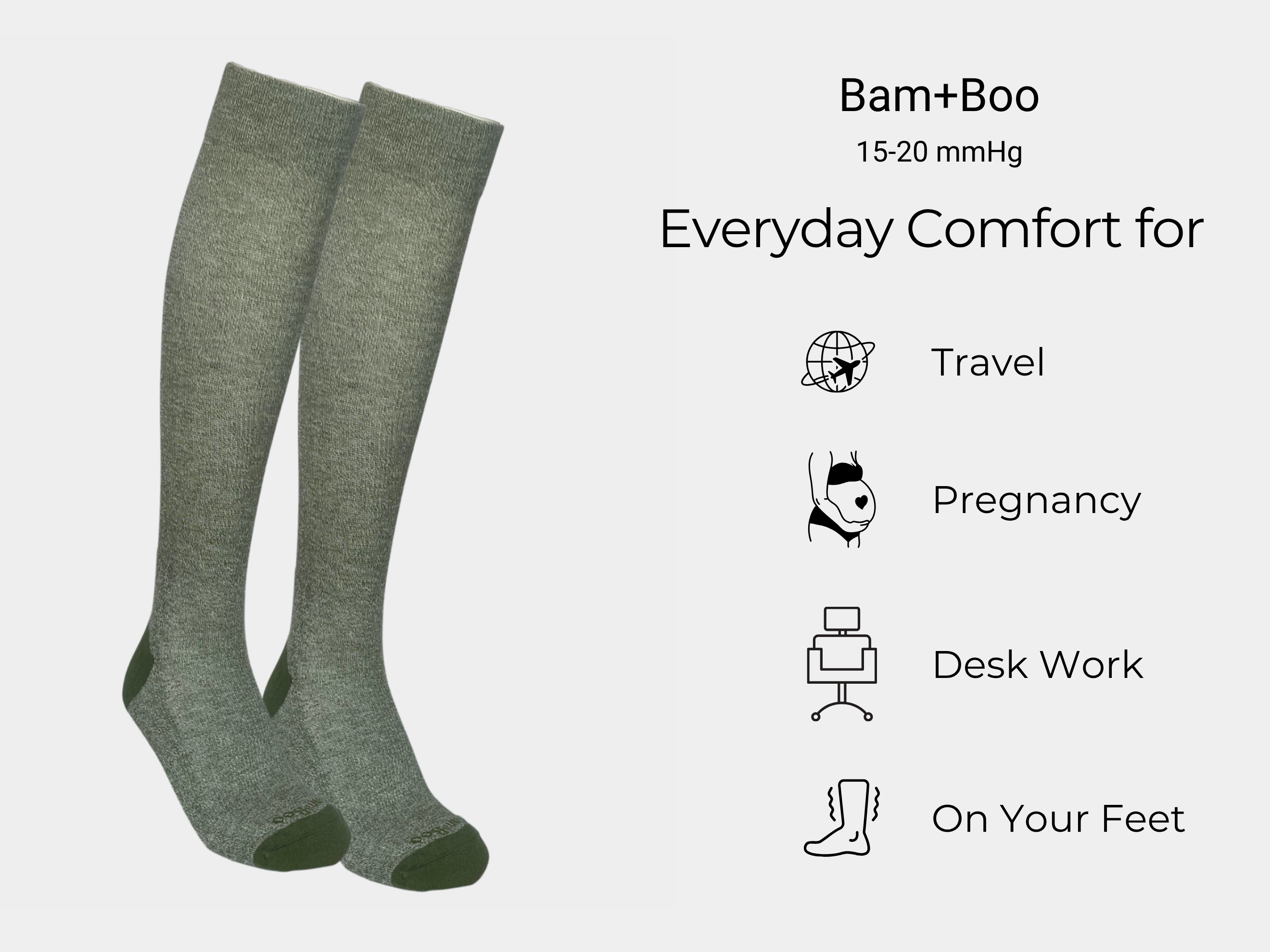 The Bam+Boo knee-high bamboo compression socks feature true gradient technology delivering precise compression where you need it the most. Our socks are lab-tested by SWISS MST IV as part of our production control.