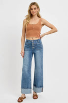 High Rise Ankle Wide Cuffed Jeans