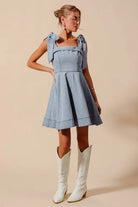 Fit and Flare Diamond Bow Ribbon Denim Dress